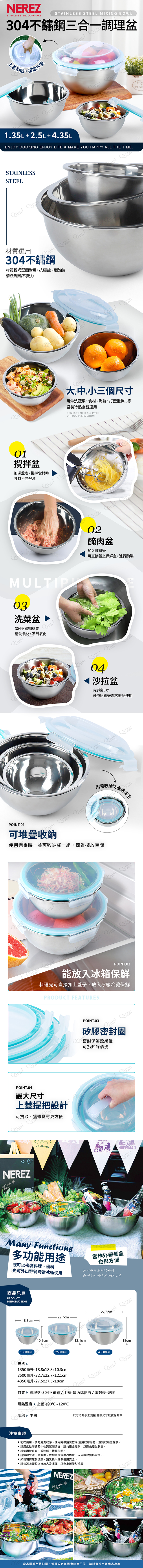 【Nerez】耐樂斯304不鏽鋼三合一保鮮調理盆_2319320