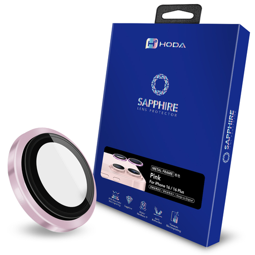 HODA 藍寶石原機結構鏡頭保護貼 iPhone 16/16Plus 粉色(2入)