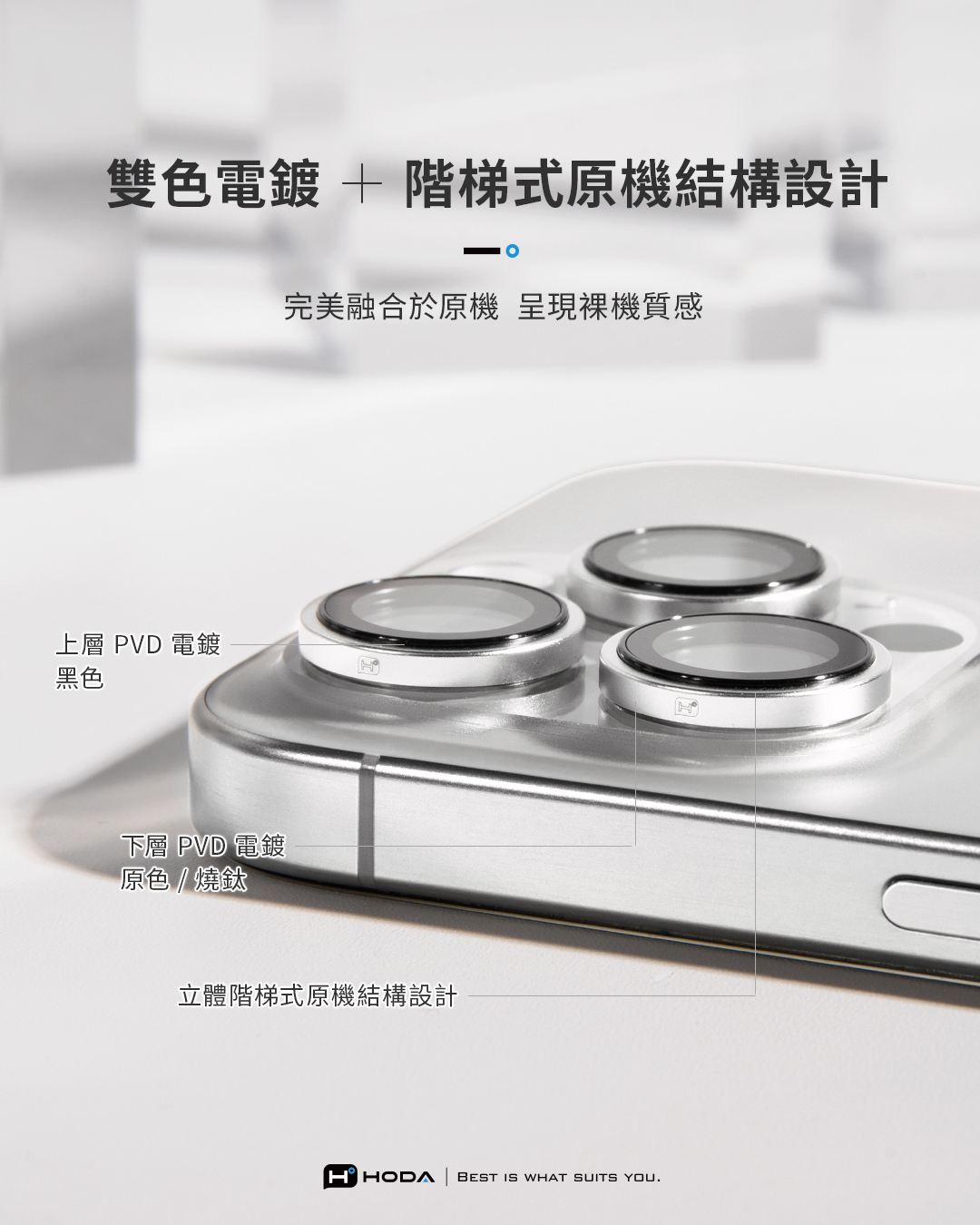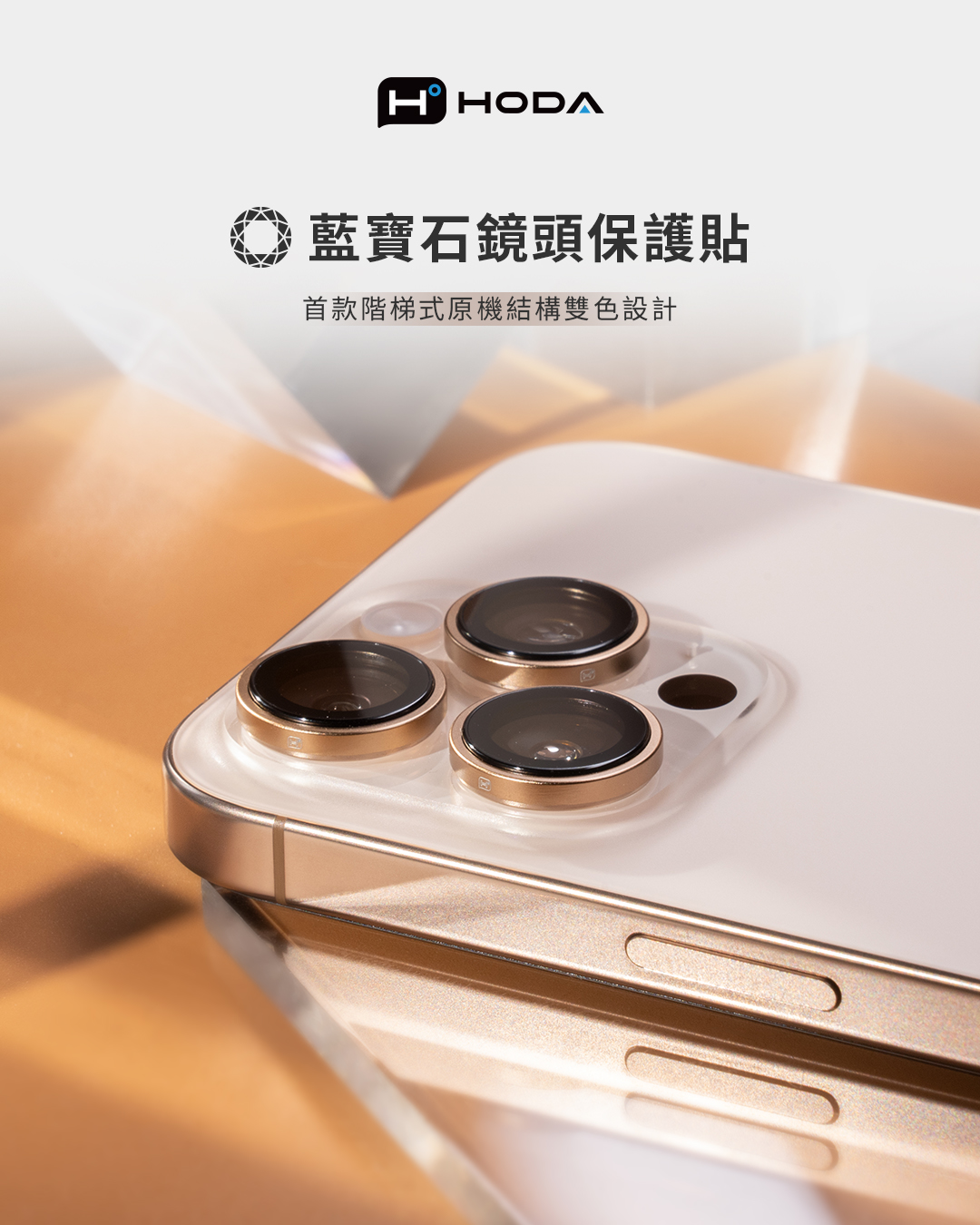 HODA 藍寶石原機結構鏡頭保護貼 iPhone 16 Pro/16 Pro MAX 沙漠色鈦3入)