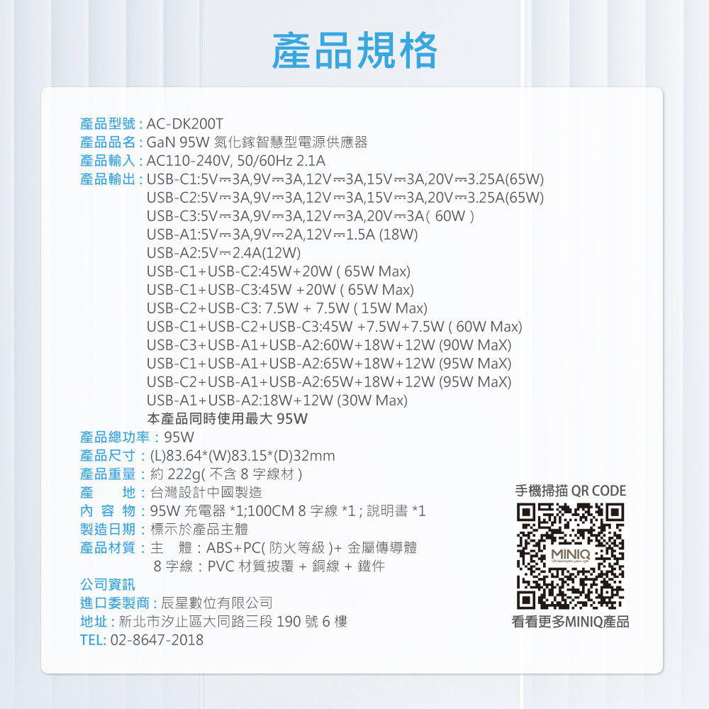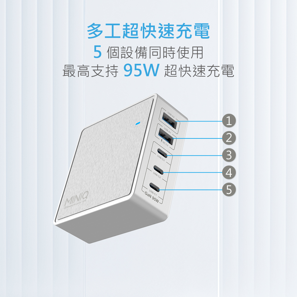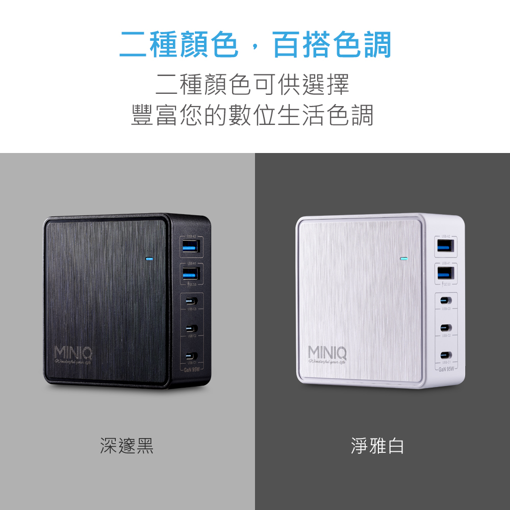【MINIQ】GaN 95W氮化鎵智慧型電源供應器(黑色)ACDK200T/B