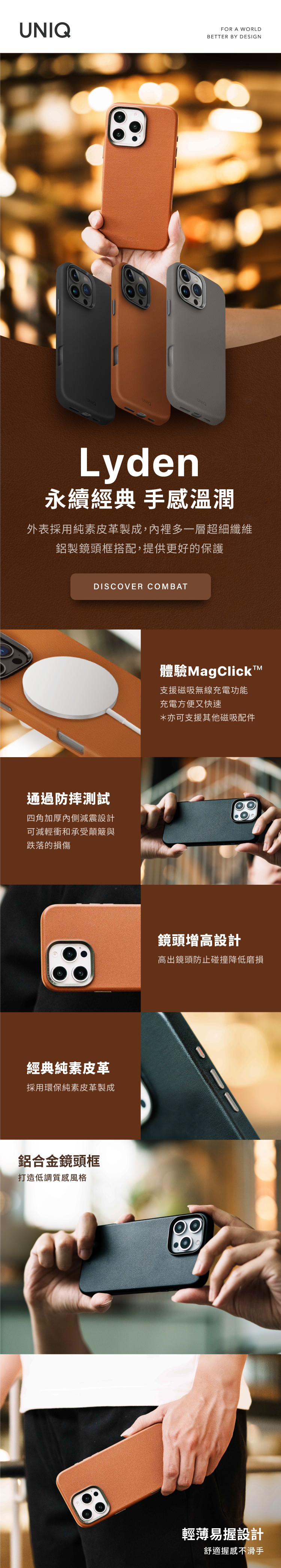 UNIQ iPhone16 Pro Max Lyden 耐刮皮革磁吸手機殼-灰