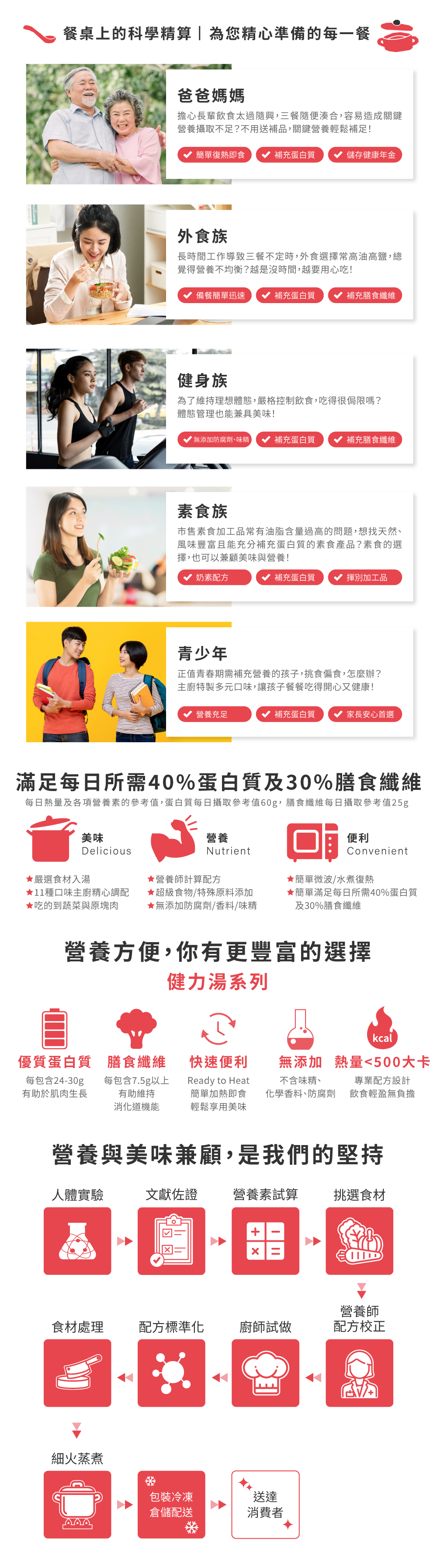 - 便利:簡單微波/水煮復熱即食、輕鬆滿足每餐所需的蛋白質及膳食纖維