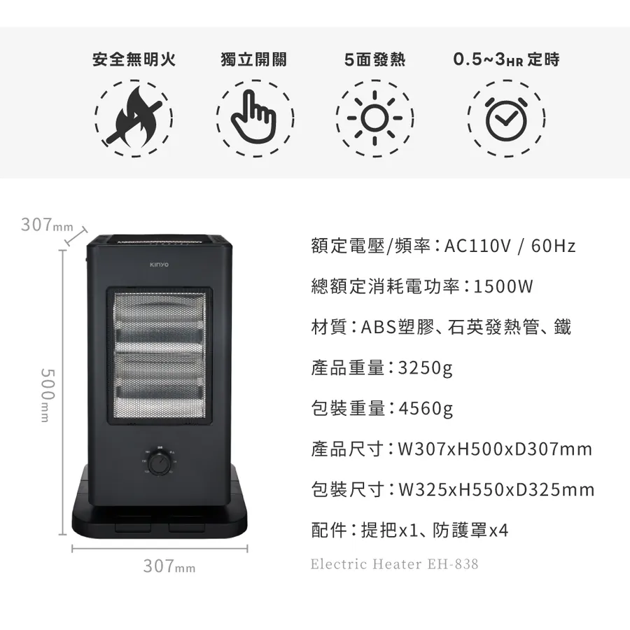 - 材質:ABS塑膠、石英發熱管、鐵