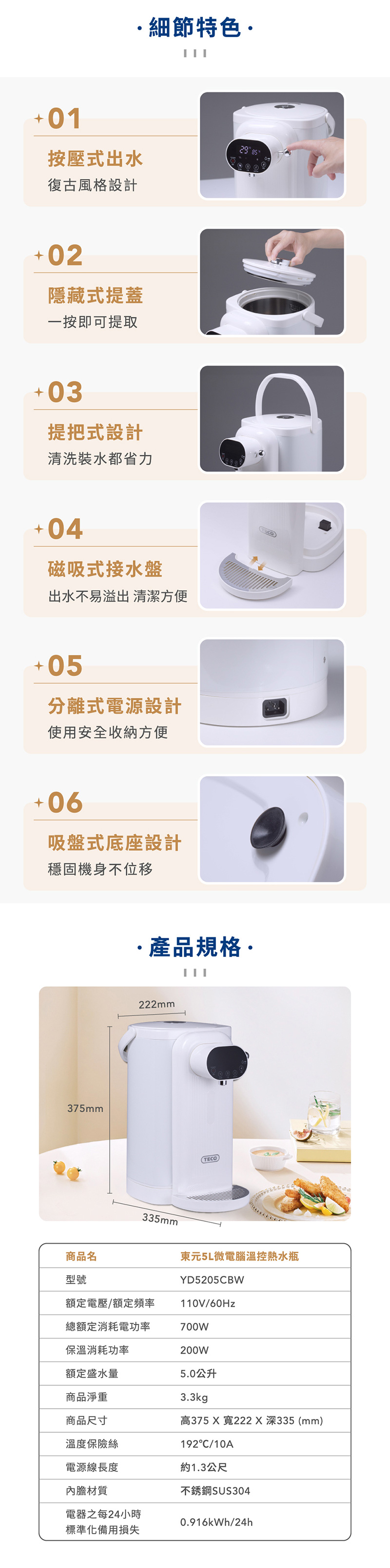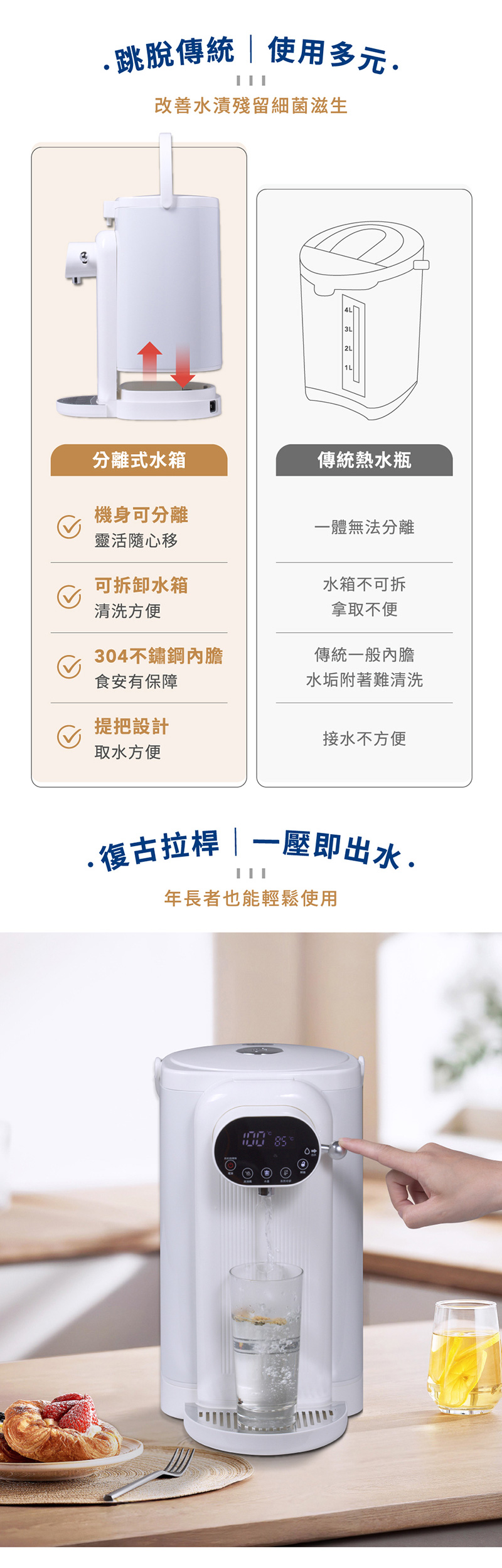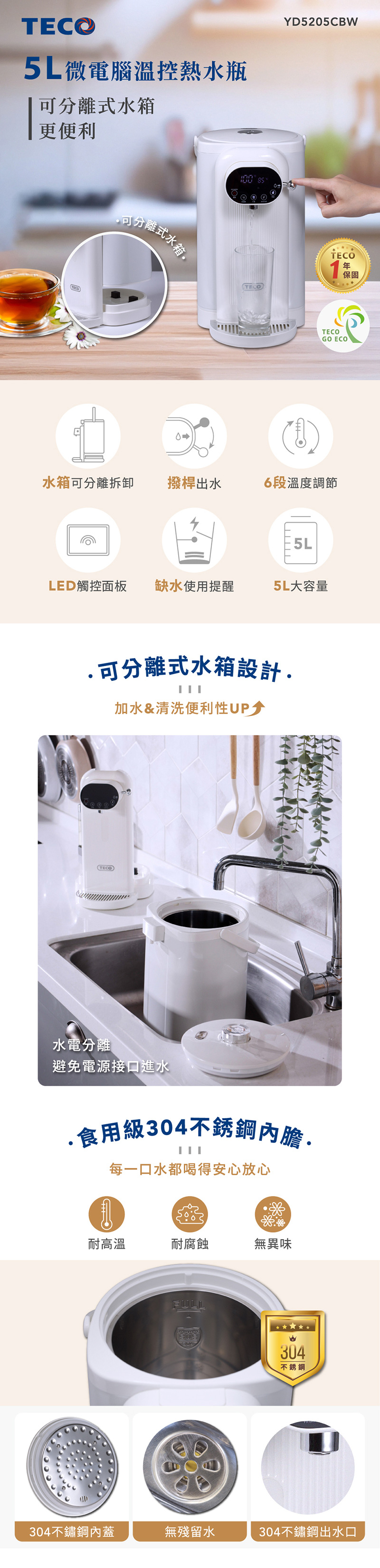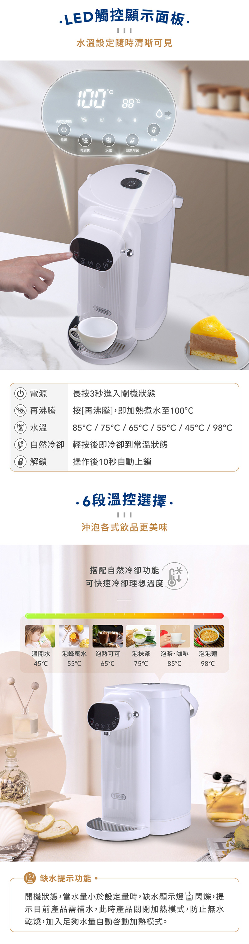 ◆6段溫控選擇(45℃/55℃/65℃/75℃/85℃/98℃)搭配自然冷卻功能,輕鬆選擇適合水溫。