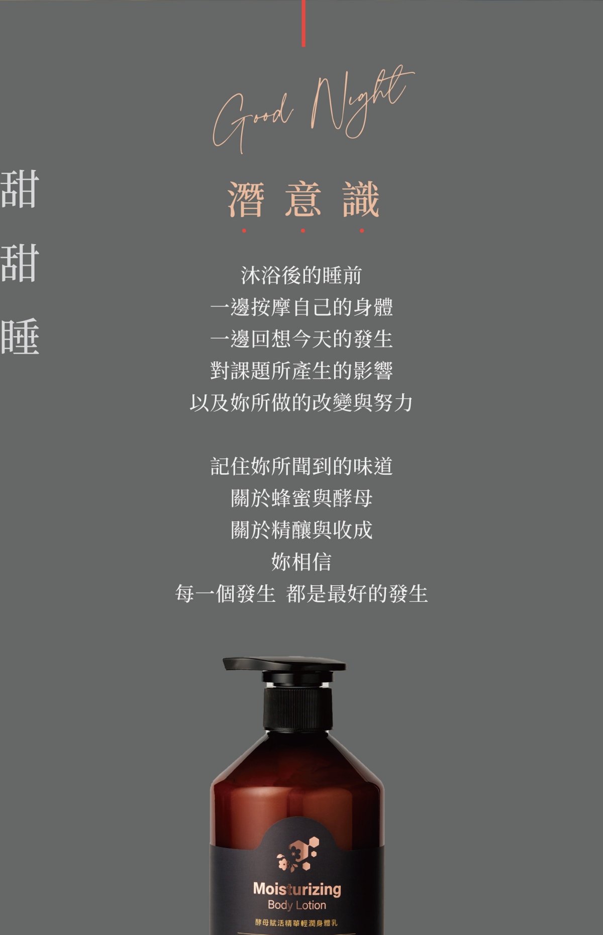 1.添加本公司核心原料酵母賦活精華,結合多種嚴選保濕修復成分,賦予身體肌膚長時間滋潤感,有效防止肌膚乾燥,改善肌膚黯沉,實現水嫩彈性美肌。