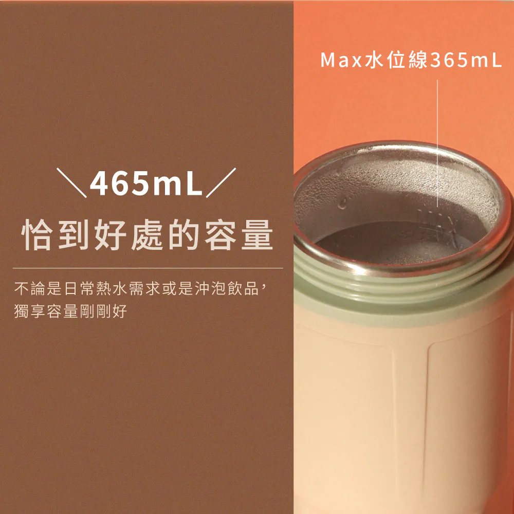 - 465mL獨享容量-8分鐘快速加熱沸騰