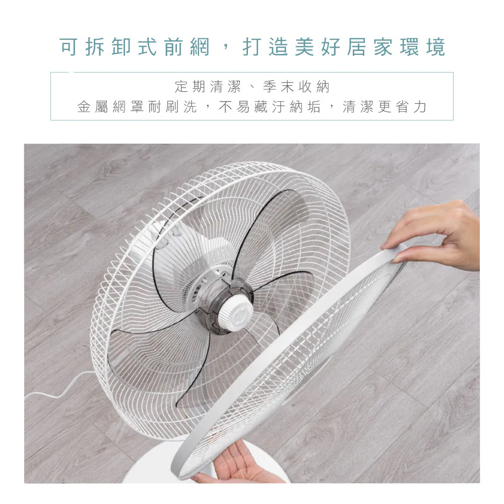 - 後側貼心手提設計,方便移動 可拆卸式前網,清潔機身不費力
