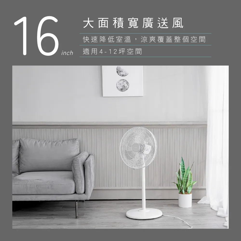 - 16吋大小,適用4-12坪空間