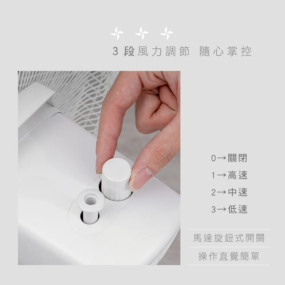 - 3檔風速調節,柔和到強勁